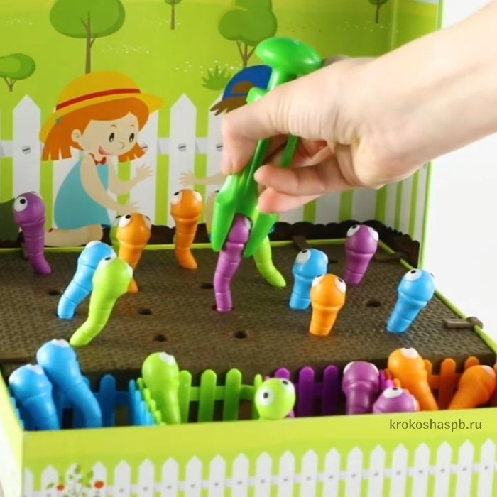 Smalko motorisko aktivitāšu komplekts, bērni darbojas pa dārzu un ķer un izvelk tārpus no mīkstās putu materiāla augsnes. Šīs aktivitātes attīsta roku spēku, zīmuļa satvērienu, koordināciju un citas svarīgas smalkās motorikas prasmes. Šie tārpi attīsta vairāk nekā tikai smalkās motoriskās prasmes 🙂 ! Izmantojot komplektā iekļautās aktivitāšu kartes, bērni var pārvērst mācīšanos par spēli, apgūstot krāsu identificēšanu, šķirošanu, kritisko domāšanu un agrīnas matemātikas prasmes! Lieliski iederēsies bērnudārzā vai pirmsskolas klasēs.