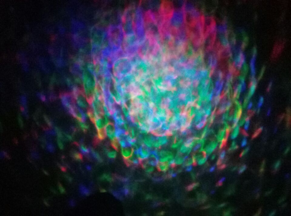 Projektors projicē mainīgu krāsas motīvu uz jebkuru virsmu, kas nodrošina relaksējošu efektu.