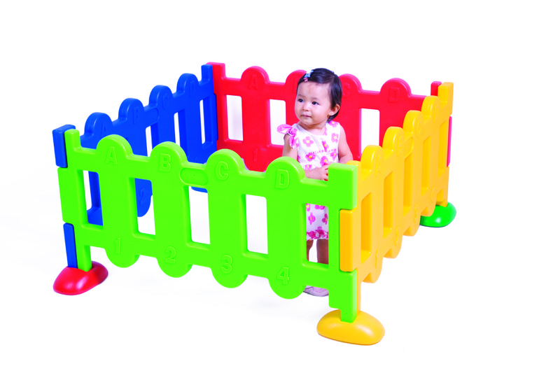 Bērnu sētiņaKomplektā ietilpst četras sētiņas sienas pamatkrāsās, katras sienas izmērs ir 105 x 53 x 5 cm. Izgatavots no kvalitatīvas plastmasas.Piemērots kolektīvai lietošanai.