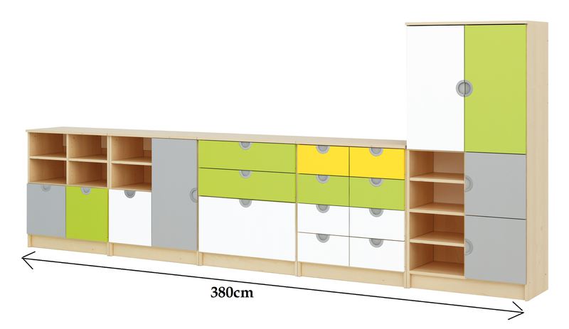 Plauktu, atvilktņu un skapīšu sistēma izglītības iestādēm – CUBO 003Tiek piegādāta izjauktā veidā.