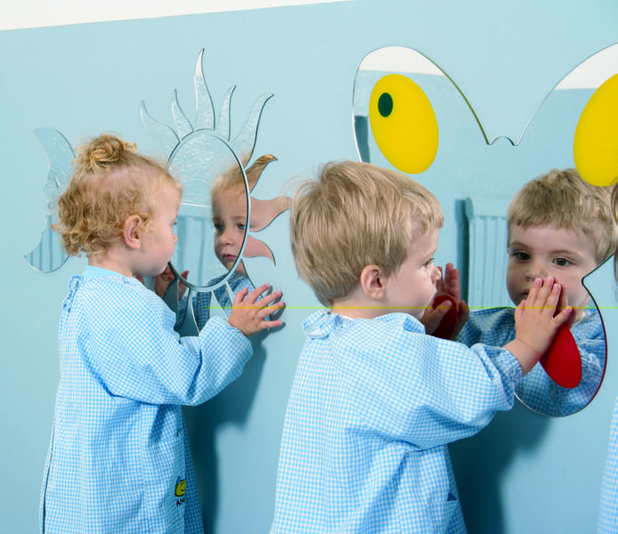 Spogulis bērnistabai vai bērnudārza grupiņai.Telpas un sevis apzināšanai dažāda vecuma bērniem, sākot no 4 mēnešiem.Spoguļa izmēri: 210*185mm1gb vai komplekts ar 10gb plastmasas spogulīši sejiņas formā (izvēli var izdarīt zemāk noklikšķinot). Spogulīšus lieto bērniem, lai viņi var lūkojoties paši uz sevi novērot savas sejas izteiksmes, mācīties identificēt un verbalizēt savas emocijas un darīt tās zināmas arī citiem.Spoguļa virsmu var izmantot arī emociju zīmēšanai (kam nepieciešams būs nomazgājamais flomasteris).Produkta video prezentāciju var aplūkot šeit: https://www.youtube.com/watch?time_continue=1&v=NUwFYxgSmGo!!!! Spoguļa virsma ir pārklāta ar aizsarg-plēvīti, kura jānoņem sākot lietot spoguli, lai spogulis būtu dzidrs!***Aptuveni četru piecu mēnešu vecumā mazuli sāk vairāk interesēt savs spoguļa attēls, un viņš pat mēdz pasniegties tam pretī, lai gan šajā vecumā viņš vēl neizprot saikni starp atspulgu un reālo cilvēku vai priekšmetu. To var pārbaudīt, novērojot mazuļa reakciju, kad no aizmugures tuvini viņam kādu priekšmetu, piemēram, rotaļlietu. Pēc 10 mēnešu vecuma telpiskā uztvere ir pietiekami attīstījusies, lai mazulis aptvertu spoguļattēlu būtību.Kad bērnam ir 11 mēneši viņš sāk saprast, ka tas, ko viņš redz, ir atspulgs. Tiesa, pagriešanās atpakaļ, lai sameklētu rotaļlietu, nenozīmē, ka bērns patiešām zina, ka spogulī redzamā seja pieder viņam, viņš vienkārši saprot, ka tas, uz ko viņš raugās, nav īsts. Šī reakcija norāda, ka sāk attīstīties tuvākās vides telpiskā uztvere. Mazuļa prātā ir izveidojies noteikts priekšstats par ierasto vidi, un viņš atpazīst, ka tā ir tāda pati kā spogulī. Bērns izmanto šo informāciju, lai saprastu rotaļlietas atrašanās vietu attiecībā pret pārējiem līdzās esošiem objektiem.Lai gan pats process, kādā bērna prātā izveidojas viņa pašattēls, joprojām ir noslēpums, ir zināms, ka izprast to, kas un kāds viņš ir, bērns var tikai, iepazīstot savu ķermeni un pētot citu cilvēku attieksmi pret sevi.Materiālu, kā tieši veidot aktivitātes mazulim ar spoguli, var atrast dažādās interneta vietnēs. (Avots: Kīra Karmilova, Anete Karmilova – Smita “Iepazīsti savu bērnu. Vecāku ceļvedis bērna agrīnajā attīstībā” (izd.SIA “J.L.V.”).)